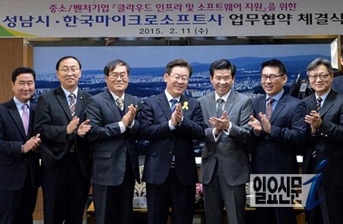 11일 이재명 성남시장과 김제임스 한국MS사 대표이사는 성남시청 9층 상황실에서 성남시 기업 육성을 위한 ‘클라우드 인프라 지원 사업’에 협약했다.