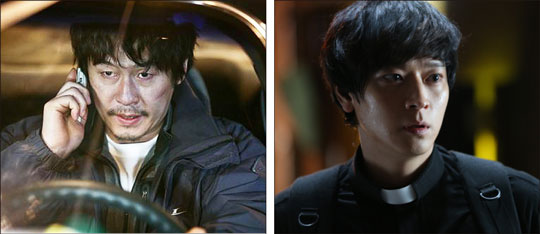 <공공의 적2>에 출연하며 한 달 만에 10㎏ 감량한 설경구. 오른쪽은 강동원의 <검은 사제들> 출연 모습.