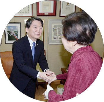신당 창당을 추진 중인 안철수 의원이 지난 4일 고 김대중 전 대통령 사저를 방문해 이희호 여사와 대화를 하고 있다. 고성준 인턴기자