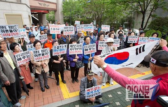 어버이연합 회원 약 100여 명은 이날 오후 2시 30분께 서울 용산구에 위치한 <시사저널> 본사 앞에서 집회를 열고 “<시사저널> 기사는 기본적인 사실 관계조차 확인하지 않은 명백한 오보”라고 주장했다.
