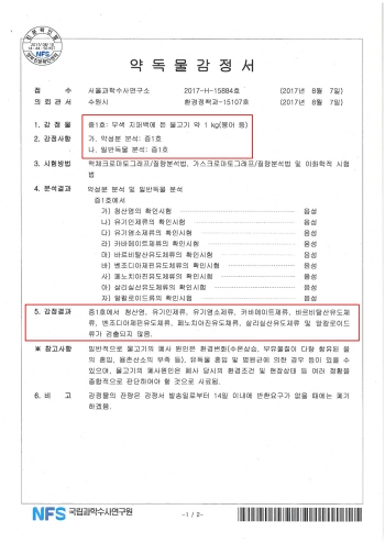 국립과학수사연구원의 폐사 물고기 시료 분석 결과지