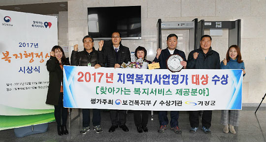 [부산=일요신문] 송희숙 기자 = 기장군(군수 오규석)은 보건복지부가 전국 시‧군‧구를 대상으로 실시한 2017년도 찾아가는 복지서비스사업 평가 결과 ‘대상’ 을 수상하고 포상금 5천만원을 받는 쾌거를 이뤘다고 밝혔다.