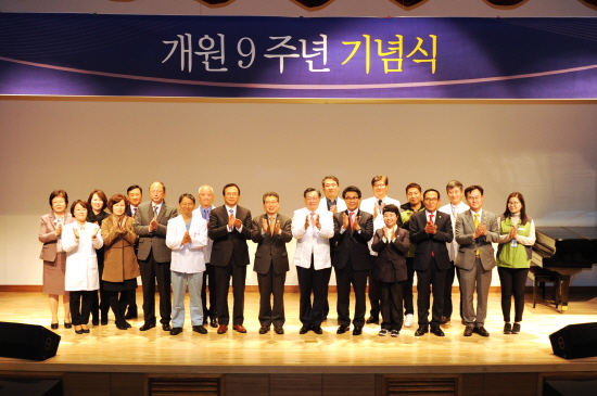행사는 양산시립 합창단 축하공연, 개원 9주년 기념 카피라이팅 응모작 영상 상영, 우수부서·모범직원 표창, 병원장 기념사, 외빈 축사 등으로 진행됐다.