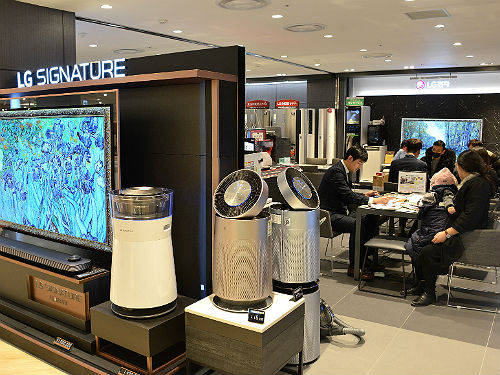 롯데백화점 부산본점 6층 LG전자 매장에서 가전제품을 구매하기 위해 상담고객으로 붐비는 매장