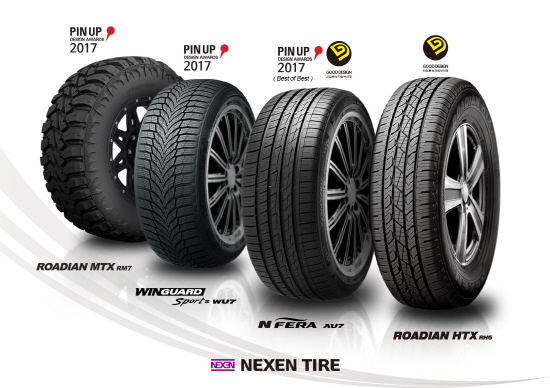 [부산=일요신문] 박영천 기자 = 넥센타이어(대표이사 강호찬)는 국내 ‘굿 디자인 어워드 2017’과 ‘핀업 디자인 어워드 2017’에서 4개 제품이 잇따른 수상을 했다고 14일 밝혔다.
