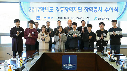 UNIST(총장 정무영)는 경동장학재단과 13일 오전 11시 대학본관 6층 대회의실에서 ‘2017 경동장학재단 장학증서 수여식’을 갖고 10명의 신규 장학생에게 증서를 전달했다고 밝혔다.