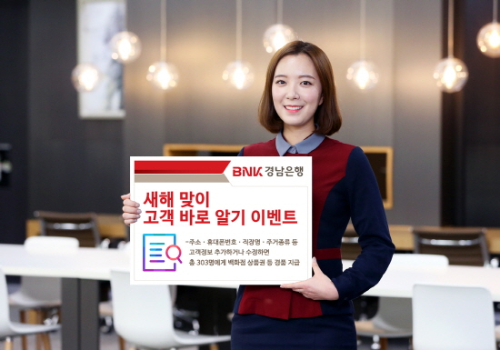 [경남=일요신문] 박영천 기자 = BNK경남은행은 내년 2월말까지 ‘새해맞이 고객 바로 알기 이벤트’를 진행한다.