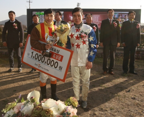 이 밖에 김영관 조교사와 조인권 기수는 홈페이지 인기투표를 통해 ‘고객이 뽑은 조교사와 기수’에도 선정돼 ‘최우수상’에 이어 ‘고객인기상’까지 획득하며 2관왕을 차지하는 영예를 누렸다.