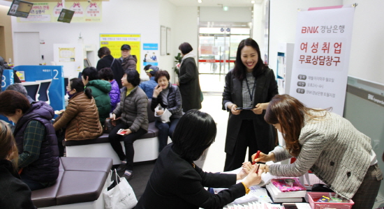 BNK경남은행은 본점 영업부와 토월지점에서 확대 운영하는 찾아가는 여성취업 무료 상담창구 외에도 지난 2014년부터 매년 1회 개최하는 ‘여우해(여성 우리는 해낸다)-취업페스티벌’, 경남지방중소기업청과 공동 개최하는 ‘경남 창업일자리대전’ 등을 지속적으로 개최하고 참가해 지역 여성들의 취업과 기업의 채용난을 덜어주고 있다.