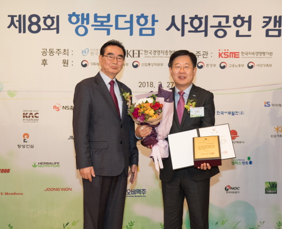 한국경영자총협회와 한국언론인협회가 공동 주최하고 국회, 기획재정부, 산업통상자원부 등 정부 각 부처가 후원하는 ‘행복더함 사회공헌대상’은 기업의 사회적 책임을 성실히 이행한 기업과 기관을 대상으로 정부기관, 대학교수, 현업 전문가들의 심사를 통해 선정된다.