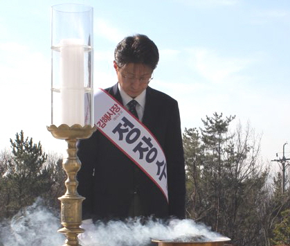 정장수 예비후보는 후보등록 후 선관위 관계자들과 인사를 나눈 뒤 오전 10시 김해시 삼방동에 위치한 충혼탑을 참배했다.
