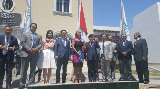 왼쪽 네 번째부터 기술보증기금 전무이사 강낙규, 페루 생산부 장관 숄(Schol)