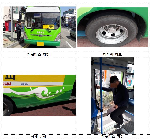 점검단은 마을버스운송사업체 차고지 및 기·종점 현장을 방문해 자동차안전기준과 차량 정비·점검, 운송사업자 및 운수종사자 준수사항 등을 점검했다.