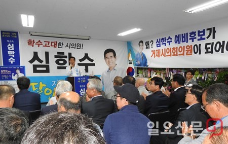 [경남=일요신문] 정민규 기자 = 거제시의원 무소속 심학수는 지난 2일 오후 6시 30분경 상동동에 위치한 선거캠프에서 지지자 700여 명이 참석한 가운데 시의원 출마 출정식을 가졌다.