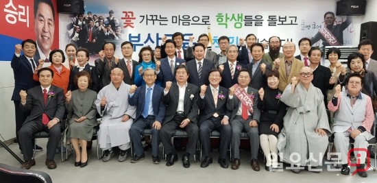 김성진 부산시교육감 예비후보의 선거사무소 개소식 장면.