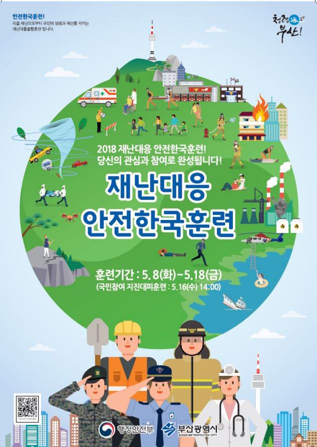 ‘2018 재난대응 안전한국훈련(이하 훈련)’이 8일부터 18일까지 부산시, 자치구·군, 유관기관·단체 전국 동시에 실시된다.