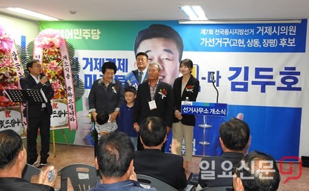 [경남=일요신문] 정민규 기자 = 거제지역 정가의 세대교체가 이루어질 6.13 지방선거에 출마한 거제시의원후보 ‘김두호’가 선거사무소를 마련하고 10일 오후 7시경 지지자 300여 명이 모인 가운데 출정식을 가졌다.