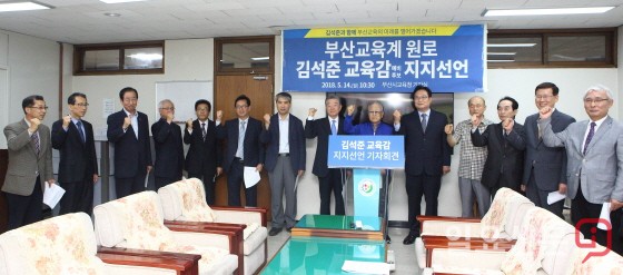 이들 부산교육계 원로들은 지난 14일 오전 10시 30분 부산시교육청 기자실에서 김석준 교육감 후보 지지선언 기자회견을 가졌다.