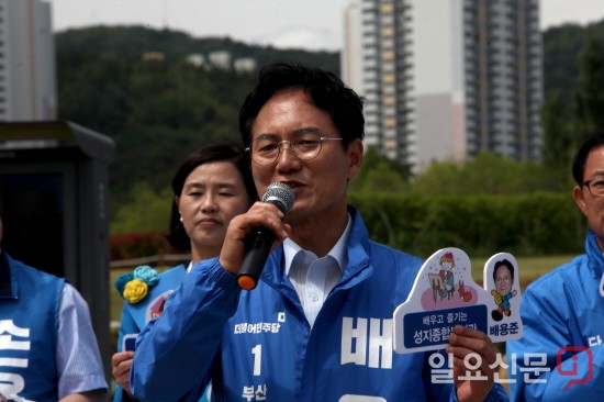 배용준 부산시의원 후보가 자신의 공약을 발표하고 있다.