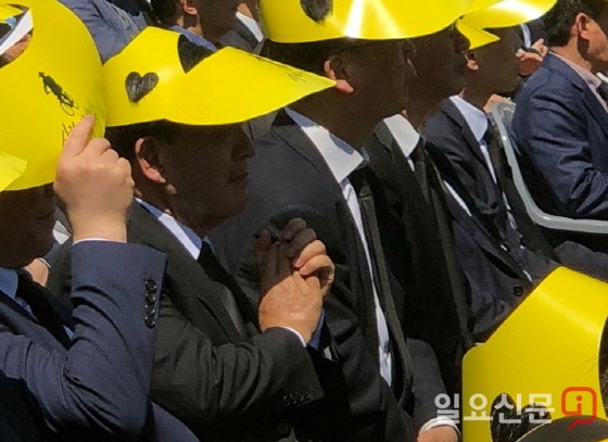 허성곤 더불어민주당 김해시장 예비후보가 23일 오후 2시 김해시 진영읍 봉하마을에서 열린 노무현 전 대통령 서거 9주기 추도식을 지켜보고 있다.