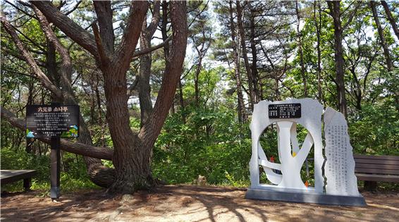김해시는 대동면 괴정리 일원 백두산 등산로변 육형제 소나무에 대해 올해 1월 특허청에 상표출원을 완료하고 지난 25일 등산객들이 쉬어갈 수 있는 상징조형물 포토존을 설치했다고 밝혔다.