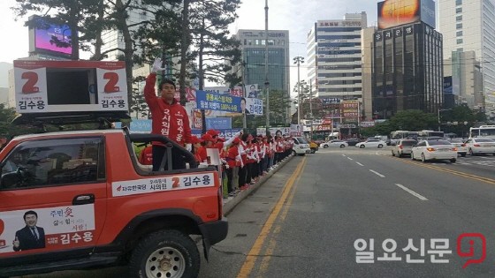 [부산=일요신문] 하용성 기자 = 자유한국당 김수용 부산시의원 후보는 본격적인 선거운동이 시작된 31일 오전 공식선거운동의 첫 유세를 펼쳤다.(▲사진)
