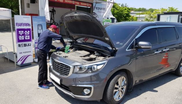 타이어 관리 전문 인력과 3.5t, 2.5t의 모바일 점검 차량이 투입돼 타이어 공기압과 마모 상태 등을 확인하고, 워셔액 보충, 차량 실내 소독 등의 서비스를 무상으로 제공한다.