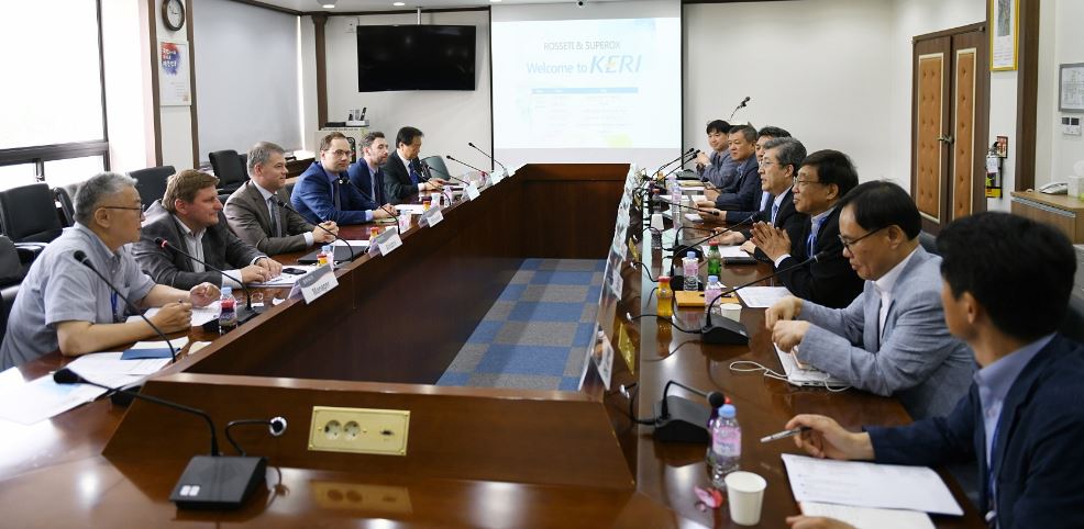 러시아 로세티(ROSSETI) ‘예브게니 올호비치’ 로세티 전략담당 부사장과 ‘보리스 아블라조프’ 혁신개발 담당 부사장, 관련 초전도 기업 슈퍼옥스(SuperOx)의 ‘세르게이 사모일렌코프’ 사장, ‘이반 미코얀’ 국제협력 담당 국장 등은 지난 8일 오후 전기전문 출연연구기관인 한국전기연구원(이하 KERI) 창원본원을 방문해 최규하 원장 등 KERI 경영진과 미팅을 갖고 협력방안을 모색했다.