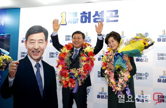 재선에 성공한 허성곤 당선인은 “지켜주셔서 고맙다. 위대한 김해시민 여러분의 승리다”라며 “선거기간 제가 약속했던 모든 일들을 최선을 다해 실천해 더 살기 좋은 김해를 만들겠다”고 밝혔다.