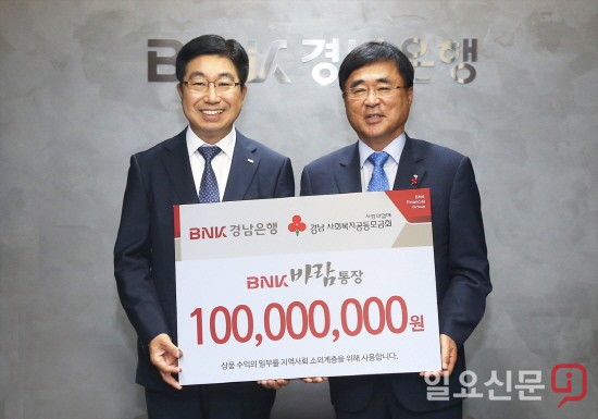 BNK경남은행이 기탁한 BNK바람통장 판매 수익금 1억원은 지역 소외계층 구호기금으로 쓰인다.