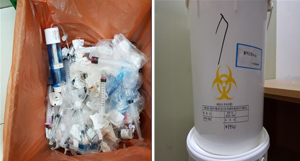 현 제도상 의료폐기물을 배출하는 사업자는 관련규정에 따라 해당 폐기물을 처리하기 전까지 관할 구․군에 폐기물 처리계획 확인을 받아야 하며, 폐기물이 발생한 때부터 종류별로 환경부장관이 검사 고시한 전용용기에 넣어 보관표지판이 설치된 보관시설 및 보관창고에 보관하도록 돼 있다.