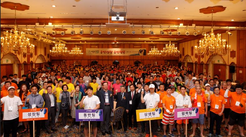 오후 전북 무주리조트에서 열린 제7회 허들링컴퍼니 컨퍼런스에서 참가자들이 기념촬영을하고 있다.