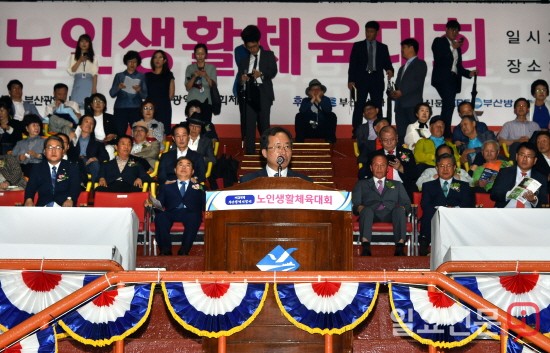 [부산=일요신문] 박영천 기자 = 김석준 부산광역시교육감이 지난 6일 오전 10시 부산사직종합운동장 실내체육관에서 65세 이상 시민 등 4,000여명이 참가한 가운데 열린 (사)대한노인회 부산광역시연합회 ‘제39회 부산광역시장기 노인생활체육대회’에 참가해 축사를 가졌다.<사진>
