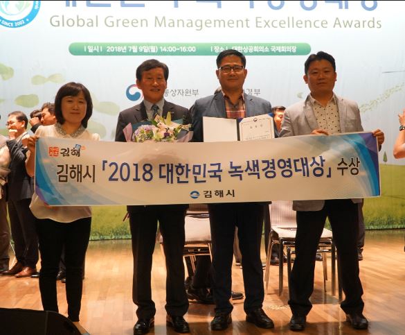 김해시(시장 허성곤)는 지난 9일 대한상공회의소 국제회의장에서 열린 ‘2018년 대한민국 녹색경영대상’ 시상식에서 기후변화대응부문 산업통상자원부 장관상을 수상했다.