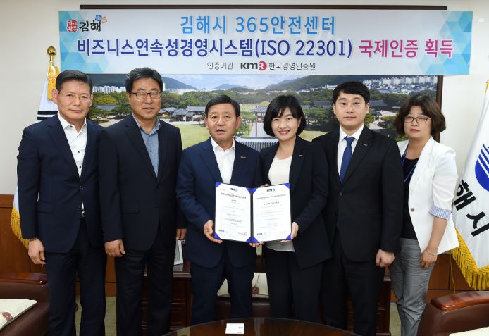 김해시 365안전센터가 전국 기초자치단체 최초로 비즈니스연속성 경영시스템(ISO22301) 국제 인증을 획득했다.
