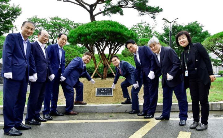 [양산=일요신문] 하용성 기자 = 김일권 양산시장은 지난 9일 오후 양산시청 정원에서 관리자 공무원들과 함께 취임을 기념해 식재한 반송나무의 제막식을 가졌다.