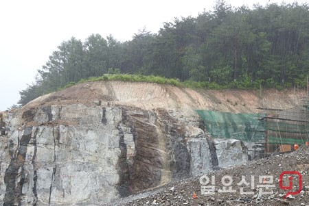 가장 불안전한 모습은 산을 직각으로 깍아 놓은 곳으로 장마로 인해 빗물이 흘려내려 산사태가 우려됨에도 불구하고 방수막 덮개 등으로 보호하지 않은 점이다.