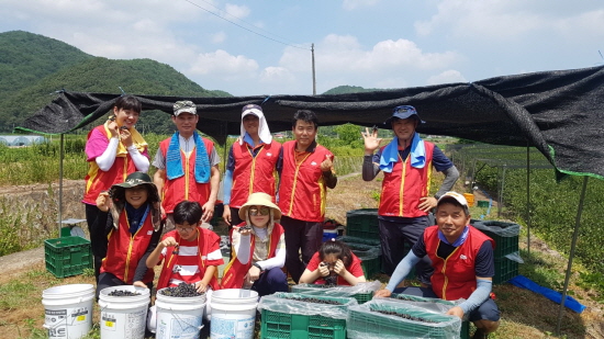 이날 행사는 농촌의 고령화 및 핵가족화에 따른 일손 부족으로 어려움을 겪는 직원가족 농원을 돕기 위해 마련됐다.