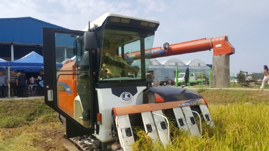 [경남=일요신문] 조정기 기자 = 경상남도는 지구온난화에 대응하고 안정적인 식량생산을 위해 지난 6일 사천시 서포면 벼 조기재배단지에서 올해 벼 첫 수확을 실시했다고 밝혔다.