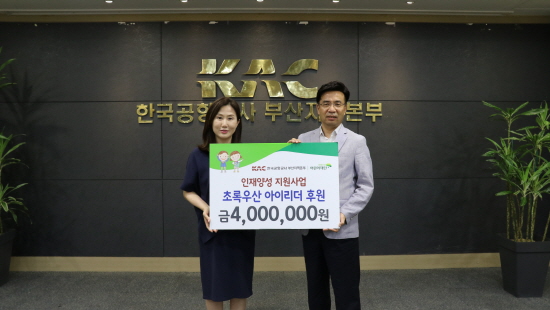[부산=일요신문] 박영천 기자 = 한국공항공사 부산지역본부(본부장 조현영)는 지난 10일 초록우산 어린이재단을 통해 부산지역 저소득층 인재양성 지원을 위한 초록우산 아이리더 사업에 400만원을 후원했다.