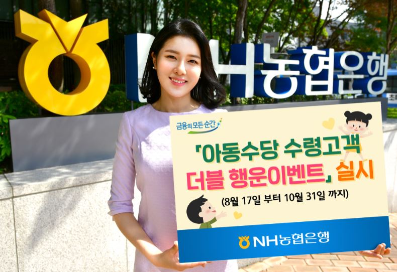 [경남=일요신문] 조정기 기자 = NH농협은행 경남영업본부(본부장 김석균)는 지난 17일부터 10월 31일까지 아동수당 수령고객 및 어린이고객을 대상으로 푸짐한 경품을 제공하는 ‘아동수당 수령고객 더블 행운이벤트’를 실시한다고 22일 밝혔다.