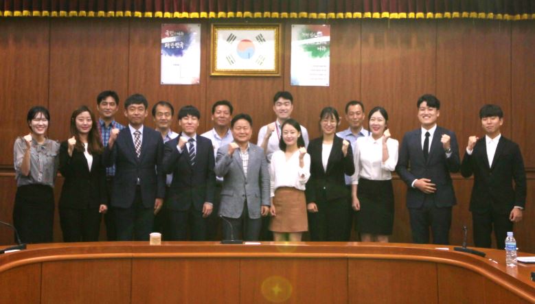 한국마사회 부경본부장(정형석)과 인턴들이 기념사진을 촬영하고 있다.