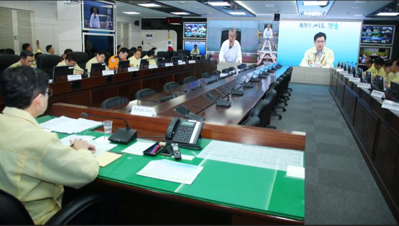 김 지사는 대통령 주재 태풍 대처상황 점검회의에 이어 곧바로 도내 18개 시군 단체장회의를 주재하고 각 지역별․분야별 태풍 대처상황을 점검했다.