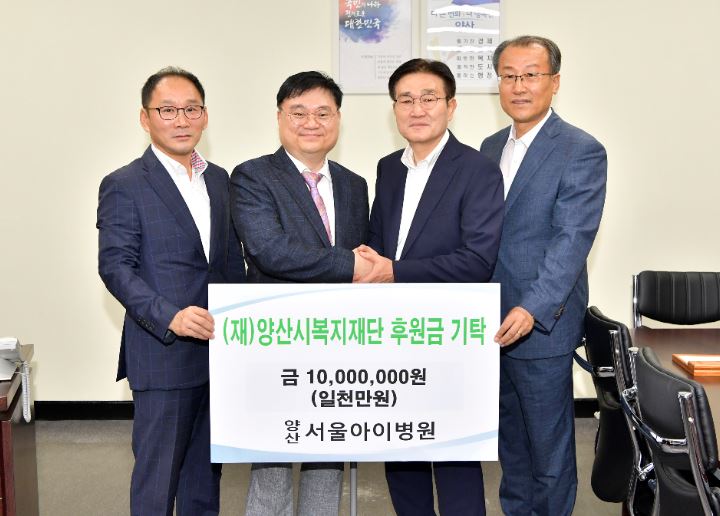 서울 아이병원이 저소득층 아동들을 위해 양산시에 지원금을 기탁했다.