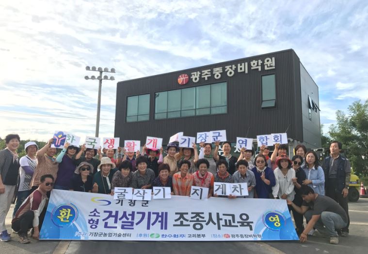 기장군 여성농업인 굴삭기 운전면허 취득 교육 후 기념촬영 모습