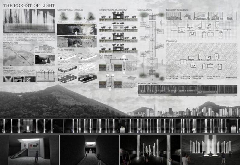 대상으로 선정된 성균관대학 백송민의 ‘the forest of light’는 김해터널 테마문화공간조성사업이라는 주제로 빛의 기둥으로 새롭게 지어지는 터널의 내부는 터널의 재해석으로 새로운 기운을 불어 넣는 이미지를 도출해 전체적인 디자인 과정에 대한 설명이 구체적으로 표현돼 있으며 각 요소 및 기법들의 완성도가 높은 디자인으로 심사위원들로부터 높은 평가를 받았다.