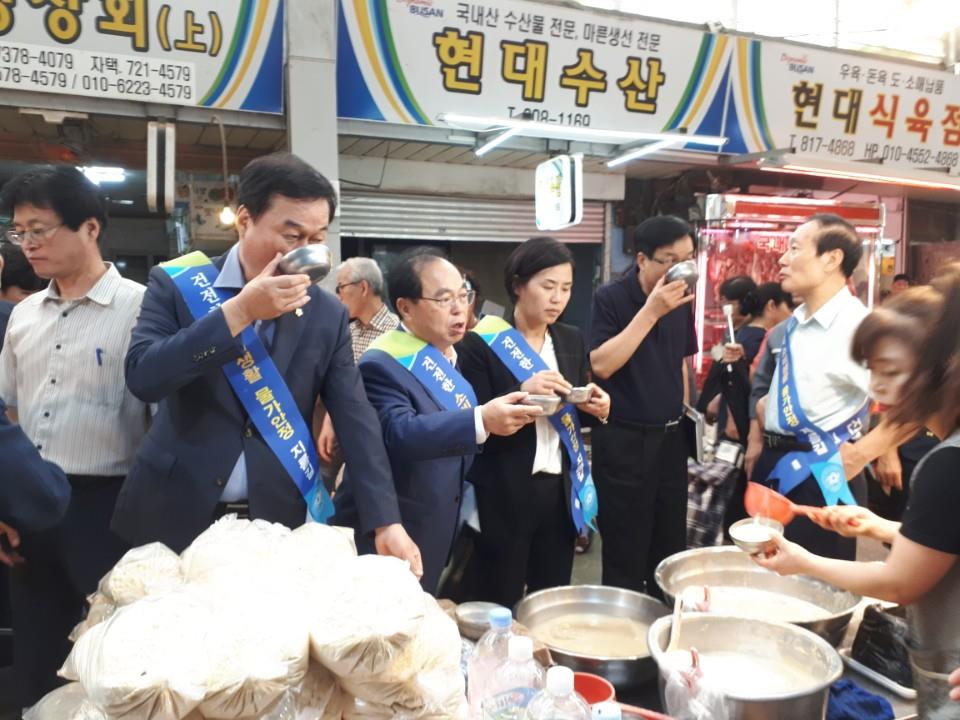 오거돈 시장이 부전시장을 방문해 시장 물가를 점검하고 있다.