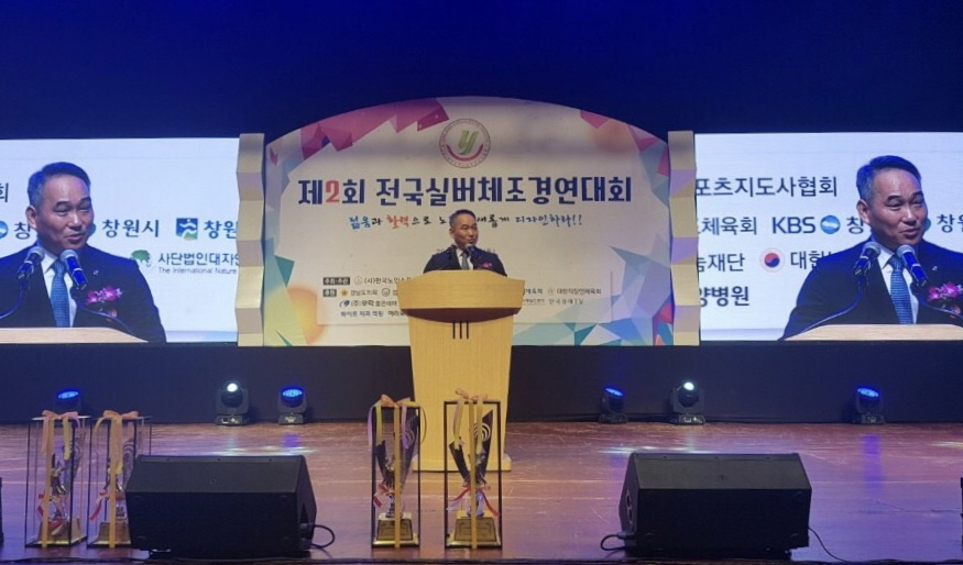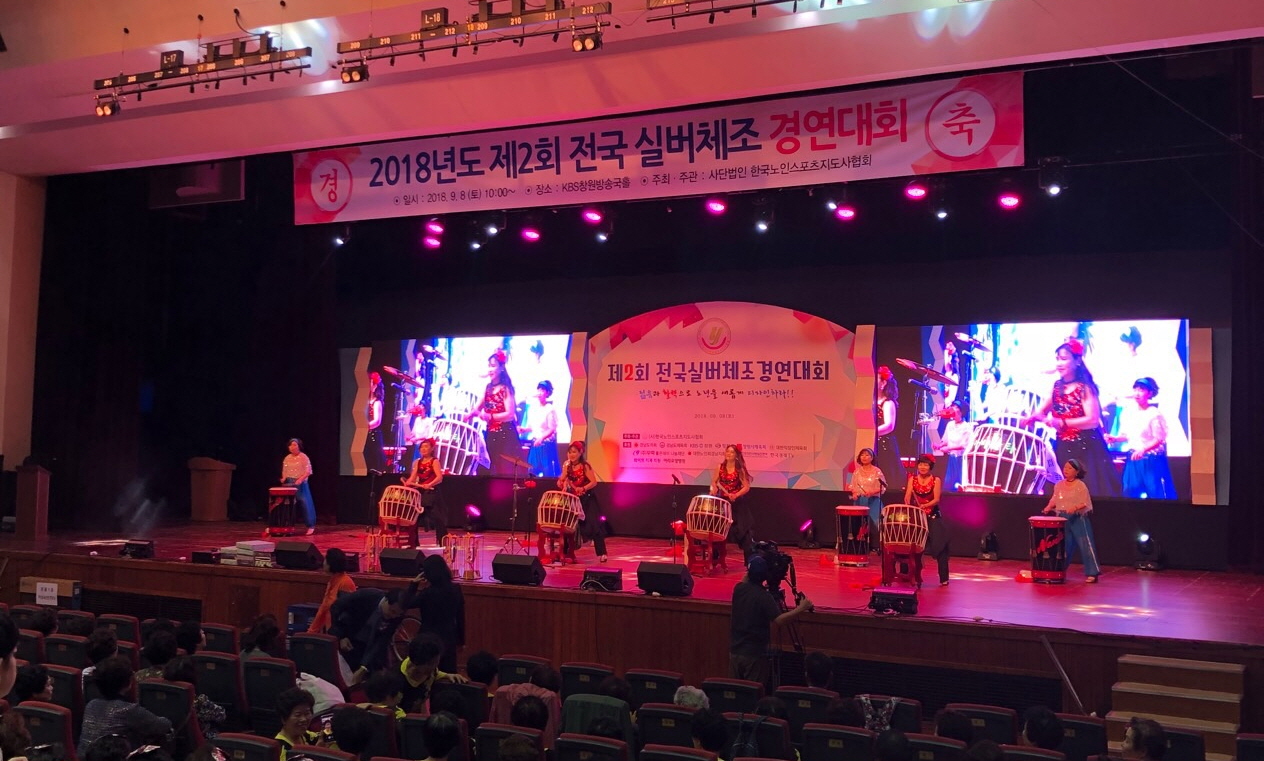 지난 8일 창원시 창원KBS방송국홀에서 열린 ‘2018 제 2회 전국 실버체조 경연대회’에는 김경수 경남도지사, 김영 한국노인스포츠지도사 협회장, 이종수 무학 사장, 각 기관 및 단체 대표 등 대회에 참가한 어르신 및 가족, 관계자 등 1700여 명이 참석했다.