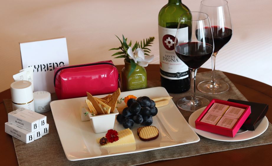 이번 패키지에는 오션뷰의 넓은 사이즈를 자랑하는 스위트 룸 1박(3인 기준)을 기본으로 ▲영국 프리미엄 코스메틱 브랜드 ‘이브롬’의 파우치 키트(15만원 상당) ▲스웨덴 명품 향수 브랜드 ‘바이레도’ 미니 향수 세트(4만원 상당) ▲ 프랑스 럭셔리 식료품 브랜드 ‘포숑’의 초콜릿 박스 ▲객실 내 치즈 플래터 & 와인 1병 ▲이그제큐티브 라운지에서의 3인 조식 ▲맥퀸즈 풀 무료입장 ▲피트니스&사우나 무료입장 ▲워터하우스 무료이용권 ▲엑스트라 베드 1개 등이 모두 포함된다.