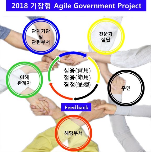 오 군수는 “기장형 Agile Government Project’(기장형 애자일 행정 프로젝트)의 대표 키워드는 실사구시의 실용(實用), 저비용고효율의 절용(節用), 여러 사람의 의견을 두루 듣는 겸청(兼聽)”이라며 “모든 행정 정책과 사업의 초기 단계부터 지역주민, 전문가단체, 이해관계자, 관련 부서 등과 대화하고 협업해서 행정의 최종 수요자들의 다양한 의견이 처음부터 충분히 반영되고 피드백(feedback)되도록, 모든 업무에 애자일 전략을 도입하겠다”고 밝혔다.
